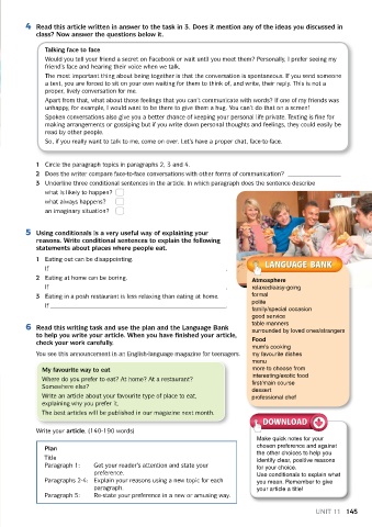 6 Read this writing task and use the plan and the Language Bank surrounded by loved ones/strangers