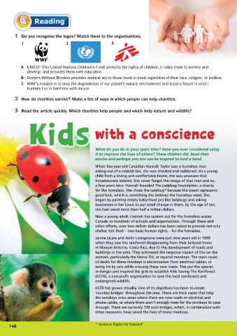 3 Read the article quickly. Which charities help people and which help nature and wildlife?