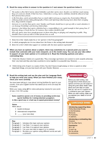 6 Read this writing task and use the plan and the Language Bank