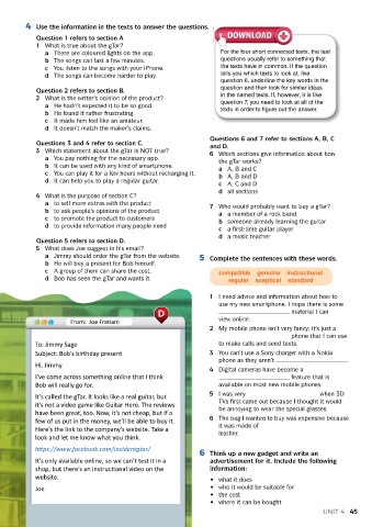 2 What is the writer’s opinion of the product? in the named texts. If, however, it is like