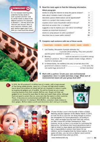 For the multiple-matching task, mentions using the Internet to keep the planet cleaner? 1