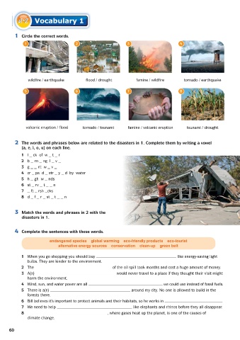 2 The words and phrases below are related to the disasters in 1. Complete them by writing a vowel