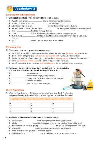 5 When Mum went on strike, the dishes piled on / piled up in the sink and the flat got very messy.