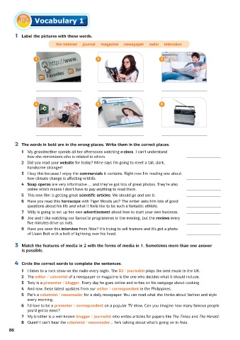 2 The words in bold are in the wrong places. Write them in the correct places.
