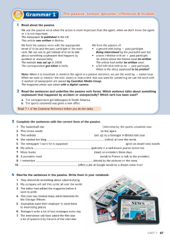 Grammar 1 The passive: tenses, gerunds, infinitives & modals