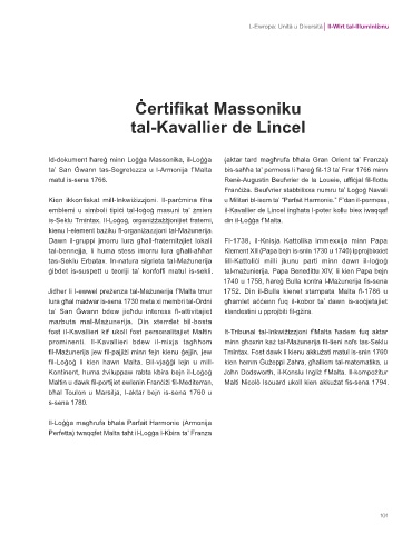 emblemi u simboli tipiċi tal-loġoġ masuni ta’ żmien il-Kavallier de Lincel ingħata l-poter kollu biex iwaqqaf