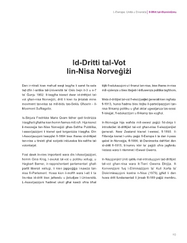 tan-nisa u tirsisti għal soċjetà inklussiva bis-saħħa tal- qabel in-Norveġja, fl-1906; id-Danimarka daħħlet dan