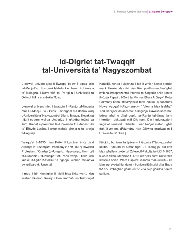 Arċisqof ta’ Esztergom. Pázmány (1570–1637) imwieled kellha l-Fakultà tal-Umanitajiet u t-Teoloġija, bid-dritt