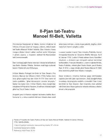 Pianta e Prospetto del Teatro Publico (Il-Pjan tat-Teatru Manoel fil-Belt, Valletta fil-Cabreo Vilhena),