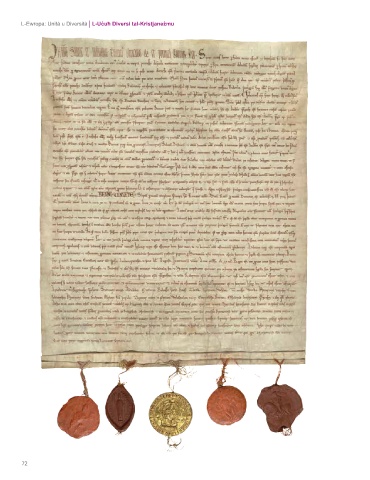 Parċmina b’5 siġilli imdendla (qisien differenti); 45 x 56 ċm – 2,2 ċm