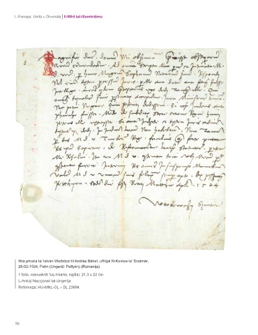 Ittra privata ta’ István Werbőczi lil András Bátori, uffiċjal fil-Kontea ta’ Szatmár,