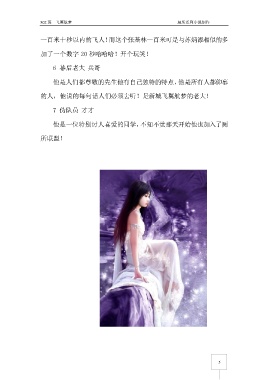 802 班 飞翼航梦 厕所系列小说创作 一百米十秒以内的飞人!而这个张基林一百米可是与苏炳添相似的多 加了一个数字 20 秒哈哈哈!开个玩笑! 6 幕后老大 兵哥 他是人们都尊敬的先生他有自己独特的特点,他是所有人都仰慕 的人,他说的每句话人们必须去听!是新城飞翼航梦的老大! 7 伪队员 才才 他是一位特别讨人喜爱的同学,不知不觉那天开始他也加入了厕 所联盟! 5