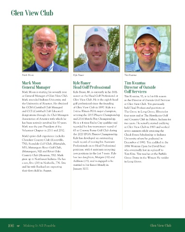 as General Manager of Glen View Club. season as the Head Golf Professional at Tim Kvantas, 52, is in his 6th season