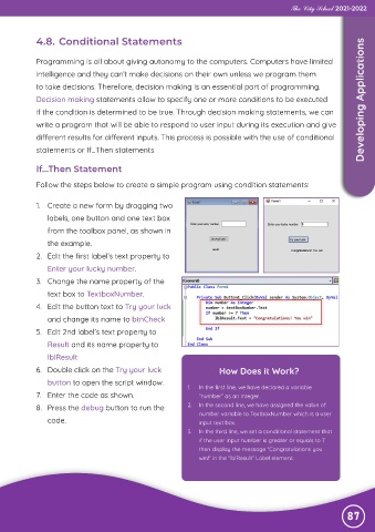 Decision making statements allow to specify one or more conditions to be executed Developing Applications