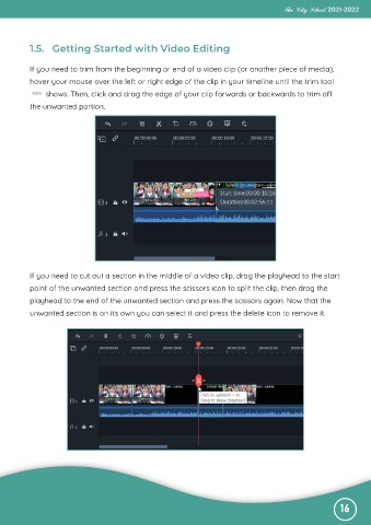 point of the unwanted section and press the scissors icon to split the clip, then drag the