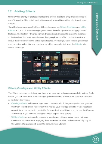 The effects are organized in three different categories; Filters, Overlays, and Utility Working with Media