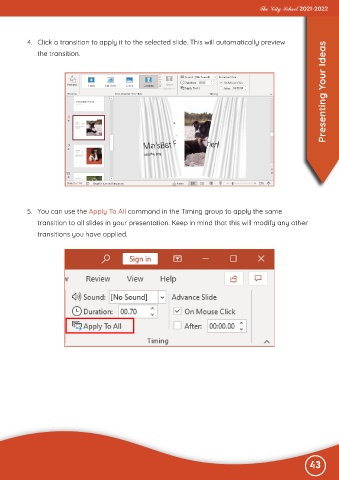 transition to all slides in your presentation. Keep in mind that this will modify any other