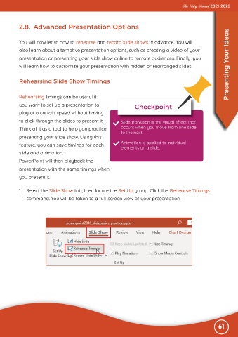 will learn how to customize your presentation with hidden or rearranged slides. Presenting Your Ideas