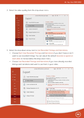 3. Select the drop-down arrow next to Use Recorded Timings and Narrations.