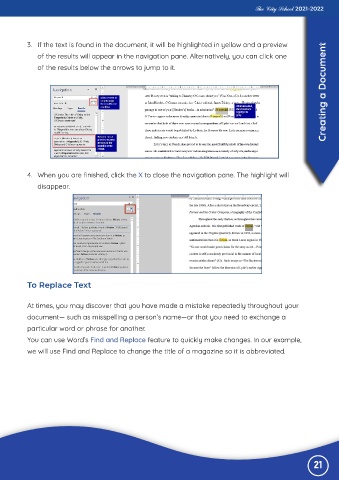 3. If the text is found in the document, it will be highlighted in yellow and a preview