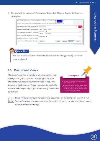 4. The text will be replaced. When you’re done, click Close or Cancel to close the