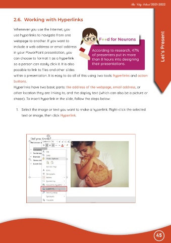 within a presentation. It is easy to do all of this using two tools: hyperlinks and action
