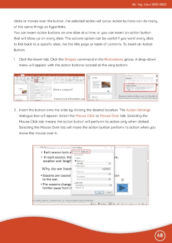 clicks or moves over the button, the selected action will occur. Action buttons can do many