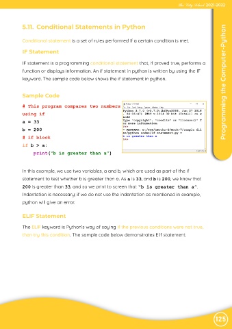 keyword. The sample code below shows the if statement in python. Programming the Computer-Python