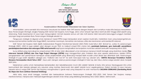 Akhir kata, saya amat bangga, komited dan berkeyakinan bahawa Perancangan Strategik 2021–2023, SMK Taman Seri Saujana mampu