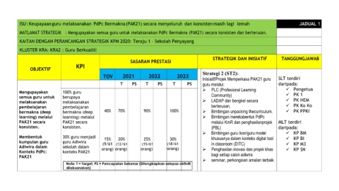 MATLAMAT STRATEGIK : Mengupayakan semua guru untuk melaksanakan PdPc Bermakna (PAK21) secara konsisten dan berterusan.