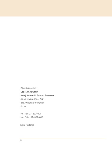 Disediakan oleh: UNIT AKADEMIK Kolej Komuniti Bandar Penawar Jalan Ungku Abdul Aziz 81930 Bandar Penawar Johor No. Tel: 07- 8225800 No. Faks: 07- 8224880 Edisi Pertama 29