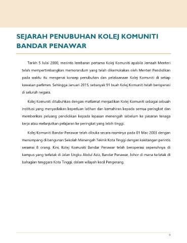 Kolej Komuniti Bandar Penawar telah dibuka secara rasminya pada 01 Mac 2003 dengan