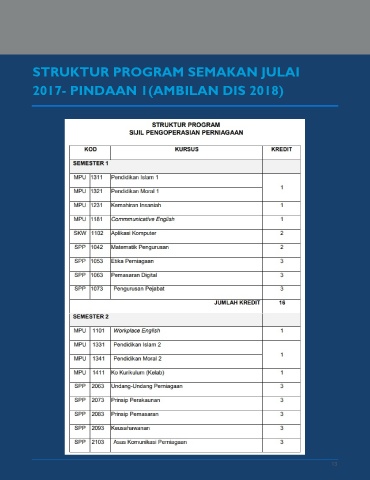 STRUKTUR PROGRAM SEMAKAN JULAI 2017- PINDAAN 1(AMBILAN DIS 2018) 13