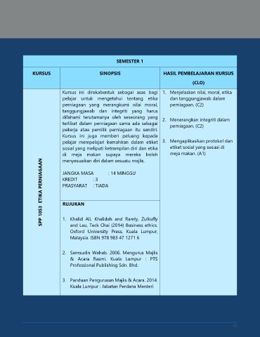 SPP 1053 ETIKA PERNIAGAAN JANGKA MASA : 14 MINGGU