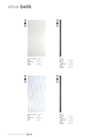 Beyaz | White 5x80 cm | 2"x32" Bej | Beige 5x80 cm | 2"x32"