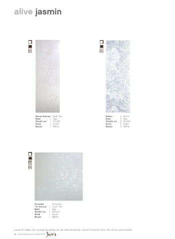 Jasmin Porselen Yer Karoları dış mekan için de kullanılmaktadır. Jasmin Porcelain Floor Tile can be used outside.