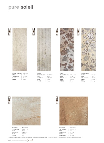 Renk | Color 30x90 cm | 12"x36" 30x90 cm | 12"x36" 30x90 cm | 12"x36" 30x90 cm | 12"x36" 15x90 cm | 6"x36" 5x90 cm | 2"x36" 5x90 cm | 2"x36"
