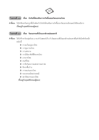 คำชี้แจง ใหนักศึกษาจับกลุมกัน ๒-๓ คน ทำโปสเตอรเกี่ยวกับวัฒนธรรมที่เปนเอกลักษณของชาติในหัวขอใดหัวขอหนึ่ง