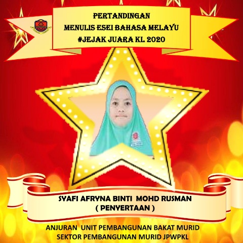 PERTANDINGAN MENULIS ESEI BAHASA MELAYU #JEJAK JUARA KL 2020 SYAFI AFRYNA BINTI MOHD RUSMAN ( PENYERTAAN ) ANJURAN UNIT PEMBANGUNAN BAKAT MURID SEKTOR PEMBANGUNAN MURID JPWPKL