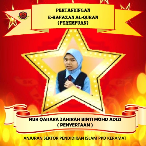 PERTANDINGAN E-hafazan al-quran (PEREMPUAN) NUR QAISARA ZAHIRAH BINTI MOHD ADIZI ( PENYERTAAN ) ANJURAN SEKTOR PENDIDIKAN ISLAM PPD KERAMAT