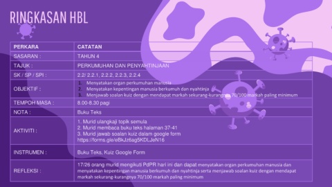17/26 orang murid mengikuti PdPR hari ini dan dapat menyatakan organ perkumuhan manusia dan