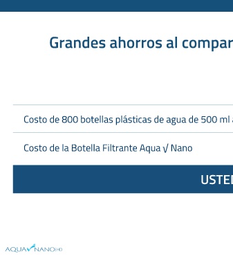 Grandes ahorros al compar Costo de 800 botellas plásticas de agua de 500 ml a Costo de la Botella Filtrante Aqua v Nano USTED