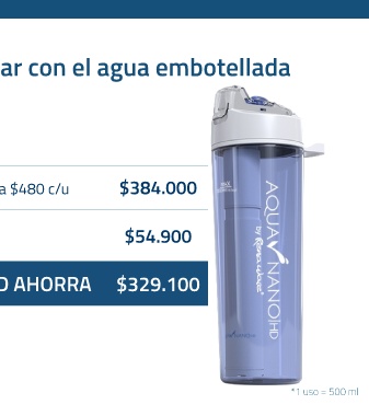 rar con el agua embotellada a $480 c/u $384.000 $54.900 D AHORRA $329.100 *1 uso = 500 ml