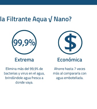 la Filtrante Aqua v Nano? Extrema Económica Elimina más del 99,9% de Ahorre hasta 7 veces bacterias y virus en el agua, más al compararla con brindándole agua fresca a agua embotellada. donde vaya.