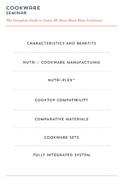 Cookware seminar The Complete Guide to Learn All About Rena Ware Cookware CHARACTERISTICS AND BENEFITS NUTRI ✓ COOKWARE MANUFACTUING NUTRI-PLEX™ COOKTOP COMPATIBILITY COMPARATIVE MATERIALS COOKWARE SETS FULLY INTEGRATED SYSTEM