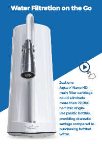 Water Filtration on the Go Just one Aqua ? Nano HD main filter cartridge could eliminate more than 22,000 half liter single- use plastic bottles, providing dramatic savings compared to purchasing bottled water.