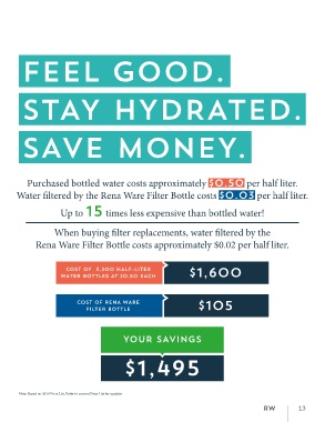 Rena Ware Filter Bottle costs approximately $0.02 per half liter.