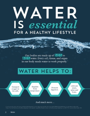 2. Mayo Clinic Staff: Nutrition and healthy eating. https://www.mayoclinic.org/healthy-lifestyle/nutrition-and-healthy-eating/in-depth/water/art-20044256. Accessed online October 2018.