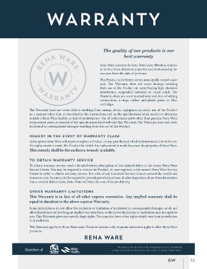 This Warranty applies to Rena Ware water filtration systems only. Separate warranties apply to other Rena Ware