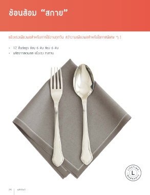 ช้อนส้อม “สกาย” แข็งแรงเพียงพอสำ หรับการใช้งานทุกวัน สง่างามเพียงพอสำ หรับโอกาสพิเศษ ๆ ! • 12 ชิ้นต่อชุด ช้อน 6 คัน ส้อม 6 คัน • ผลิตจากสเตนเลส แข็งแรง ทนทาน 24 ผลิตภัณฑ์